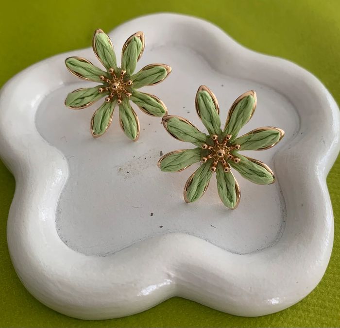 Jolies boucles d'oreilles fleur en raphia vert ! Aiguille d’oreille en acier inoxydable ! Longueur 3 cm Largeur 3 cm Style vintage / bohème ! Envoi rapide dans les 24/48 heures ! Lots d'articles avec réduction ! N'hésitez pas à vous abonner afin de ne pas manquer les nouveautés ! #boucledoreille #bijoux #bijoufemme #fleurs #doré #boucledoreillefleur #paire #accessoires #accessoiredemode #mode #tendance #cadeau #noel #anniversaire #raphia #gift #ideagift #ideagiftwoman #regalo #idearegalo #idearegalomujer #boucledoreillefleurverte #vintage #fleurjaune #boucledoreillebohème #bohème #7€ #idéecadeau #fleurverteetdorée #raphiavert #verdeau #verdeagua #fleurdorée #acierinoxydable #raphia #vert