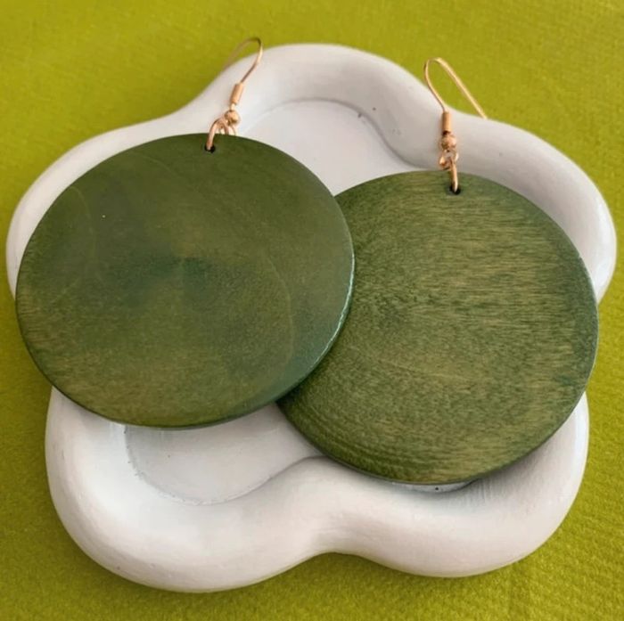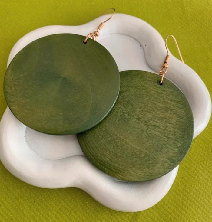 Boucles d’oreilles xxl vintages rondes vertes en bois