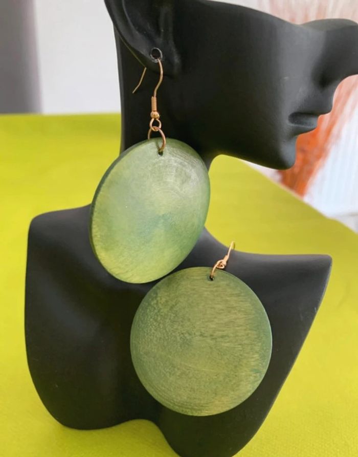 Boucles d’oreilles xxl vintages rondes vertes en bois - photo numéro 4