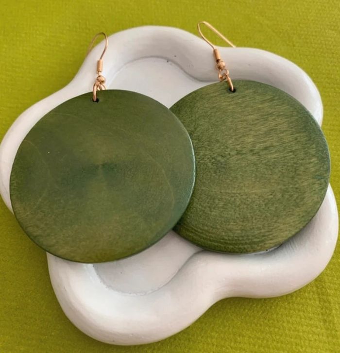 Jolies boucles d'oreilles vintages vertes rondes en bois ! Boucles d'oreilles tendances! Dimensions : 5 cm / 7 cm Aiguille d'oreille en fer doré ! Envoi rapide dans les 24/48 heures! Lots possibles avec réduction ! N'hésitez pas à vous abonner afin de ne pas manquer les nouveautés ! #boucledoreille #bijoux #bijoufemme #ronde #bois #boucledoreilleverteenbois #accessoires #accessoiredemode #mode #tendance #cadeau #noel #anniversaire #boucledoreillerondeenbois #5€ #vert #boisvert #boucledoreillerondeverte #boucledoreillesrondes #pendientes #gift #ideagift #regalo #idearegalo #earrings #idearegalomujer #ideagiftwoman #boucledoreilletendance #verte #green #verde