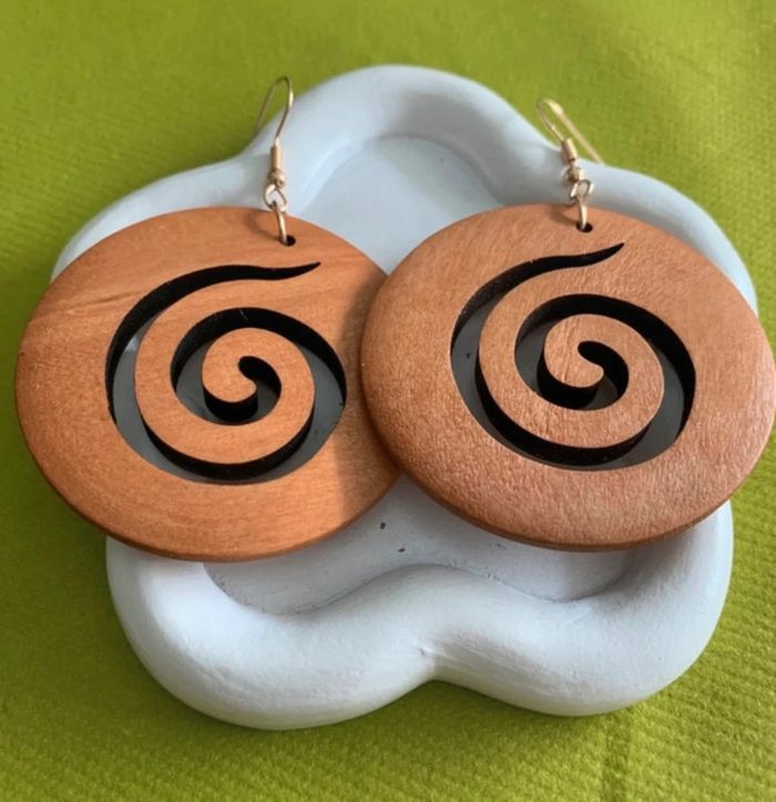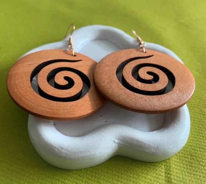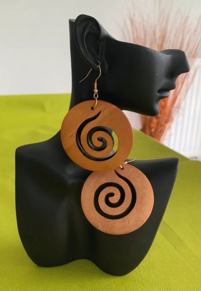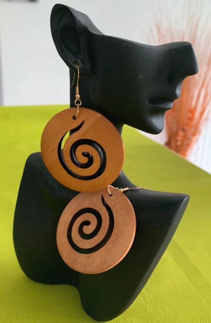 Grandes boucles d’oreilles xxl rondes spirale en bois - photo numéro 2