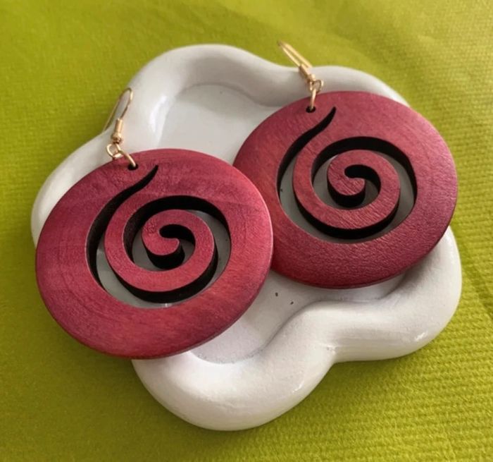 Jolies boucles d'oreilles vintages bordeaux spirale ronde en bois ! Boucles d'oreilles tendances! Dimensions : 4,8 cm / 7 cm Aiguille d'oreille en alliage de zinc ! Envoi rapide dans les 24/48 heures! Lots possibles avec réduction ! N'hésitez pas à vous abonner afin de ne pas manquer les nouveautés ! #boucledoreille #bijoux #bijoufemme #spirale #ronde #spiraleenbois #tourbillon #bois #boucledoreillespirale #accessoires #accessoiredemode #mode #tendance #cadeau #noel #anniversaire #boucledoreillespiralebordeaux #5€ #vert #boisbordeaux #bordeaux #rougebordeaux #rouge #boucledoreillespiraleenbois #pendientes #gift #ideagift #regalo #idearegalo Hearrings #idearegalomujer #ideagiftwoman #grandeboucledoreille #boucledoreilletendance #spiraleverteenbois #spiraleronde