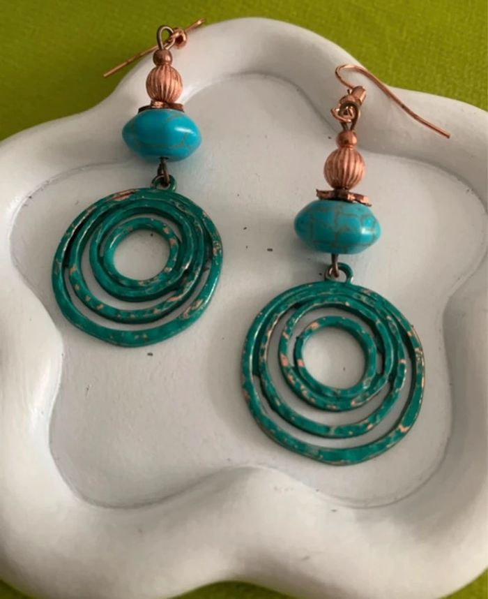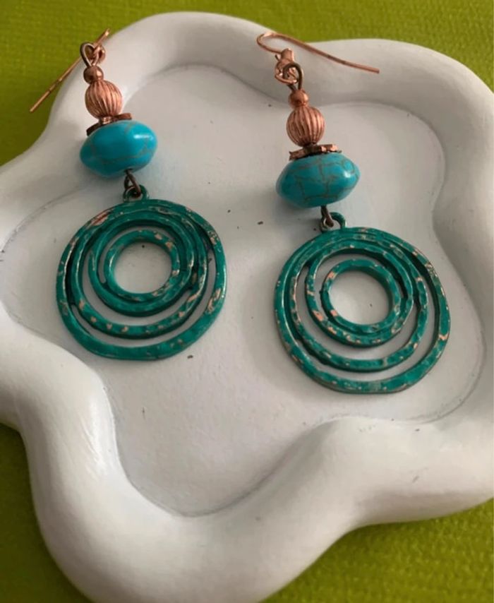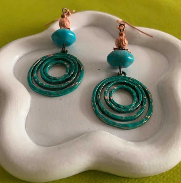Boucles d’oreilles vintages bohème vertes et bleues turquoises - photo numéro 3