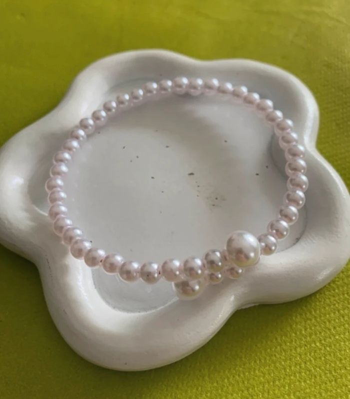 Bracelet jonc ouvert perles blanches style vintage - photo numéro 6
