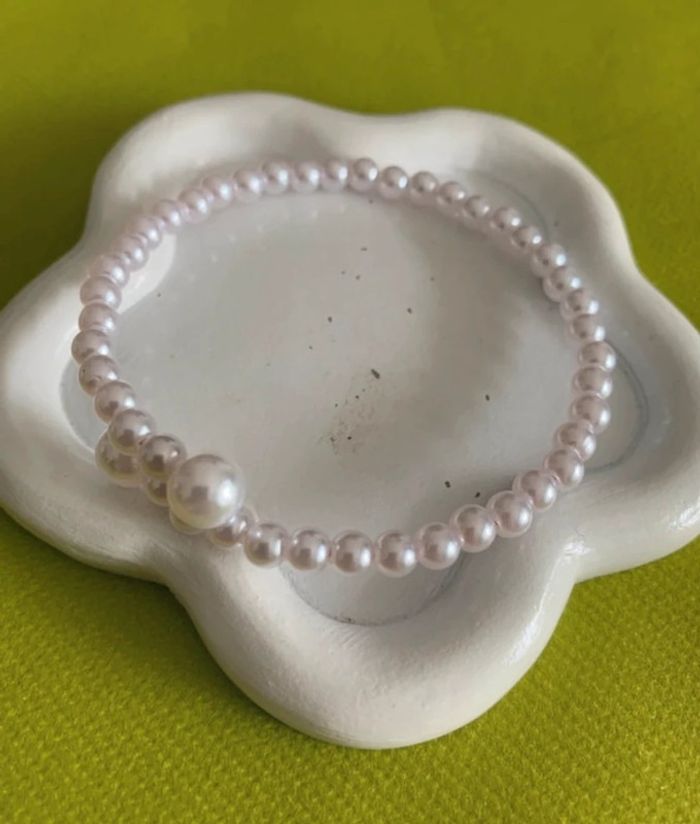 Bracelet jonc ouvert perles blanches style vintage - photo numéro 4