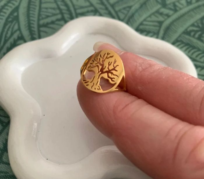 Belle bague fine arbre de vie en acier inoxydable doré! Très élégante au doigt et porte bonheur ! Taille 52/53 Envoi rapide dans les 24/48 heures ! Lots d'articles avec réduction ! N'hésitez pas à vous abonner afin de ne pas manquer les nouveautés ! #bijoux #bijoufemme #bague #baguefemme #baguearbredevie #baguedorée #arbredevie #baguefine #acierinoxydable #dorée #bagueacierinoxydable #bague5253 #anillo #accessoiredemode #mode #cadeau #noel #anniversaire #portebonheur #bagueportebonheur #bague52 #bague53 #anillo #5€