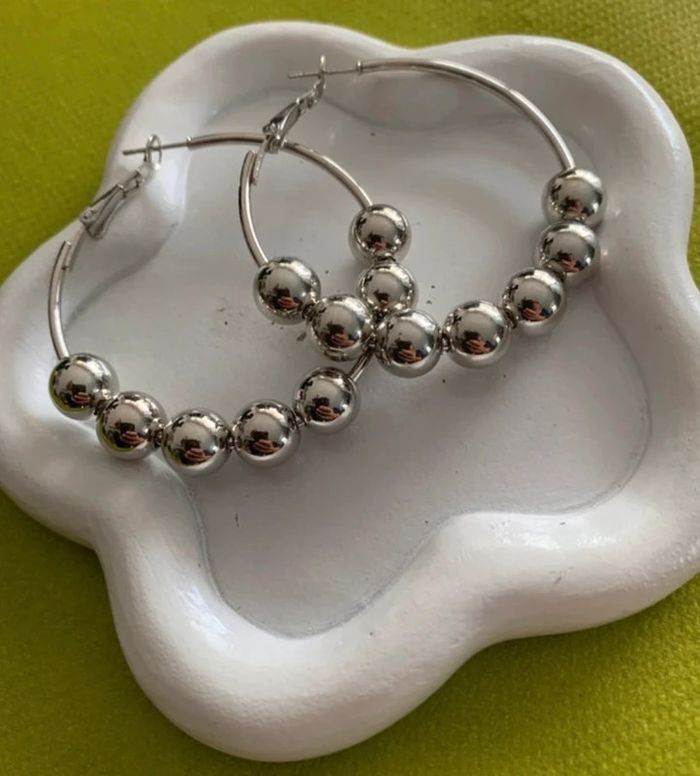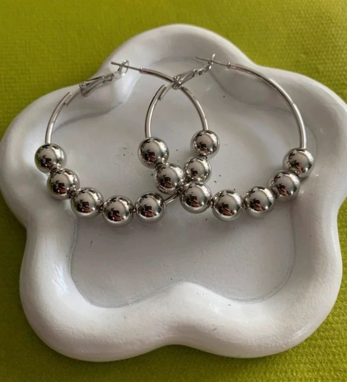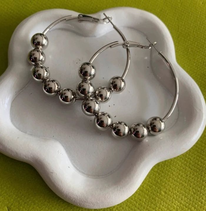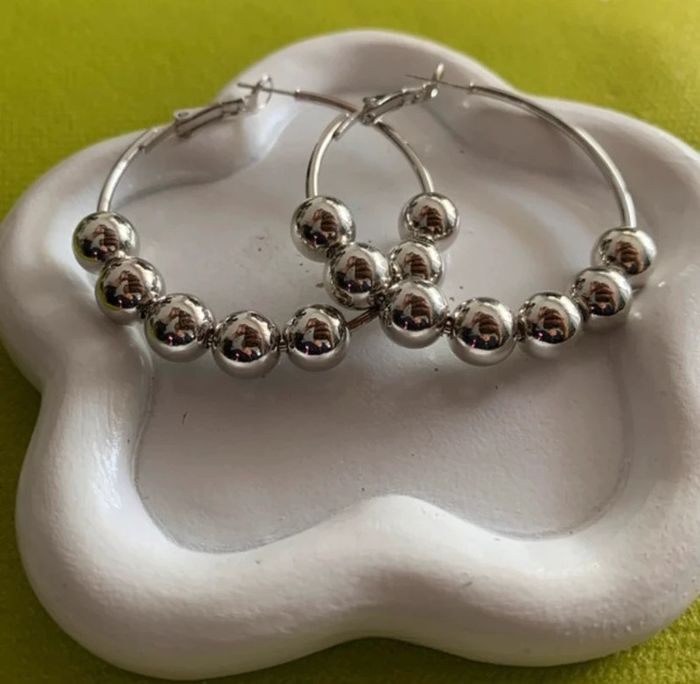 Jolie paire de boucles d'oreilles créoles perles en alliage argenté ! Aiguille d'oreille en acier inoxydable ! Taille 4,5 cm de diamètre ! Neuves ! Envoi rapide dans les 24/48 heures ! Lots d'articles avec réduction ! N'hésitez pas à vous abonner afin de ne pas manquer les nouveautés ! #boucledoreille #bijoux #bijoufemme #créoles #anneaux #boucledoreilleargentée #cercles #perles #perleargentée #accessoires #accessoiredemode #mode #tendance #cadeau #noel #anniversaire #neuves #boucledoreilleneuve #regalo #idearegalo #gift #ideagift #ideagiftwoman #idearegalomujer #vinteditalia #vintedspain #créoleargentée #creoleperle #créoleperleargentée #alliagedezinc #argenté #créoles45mm #7€ #vintage #années80
