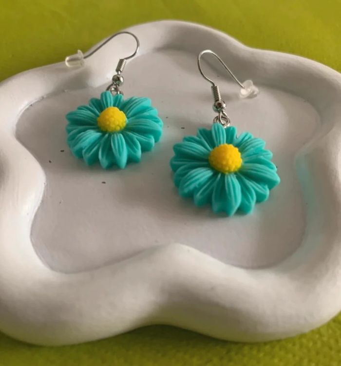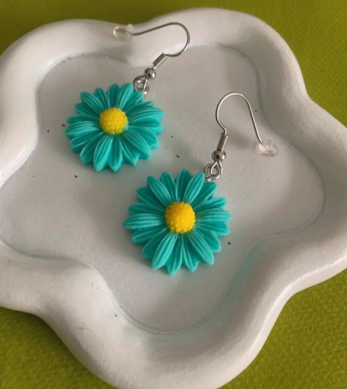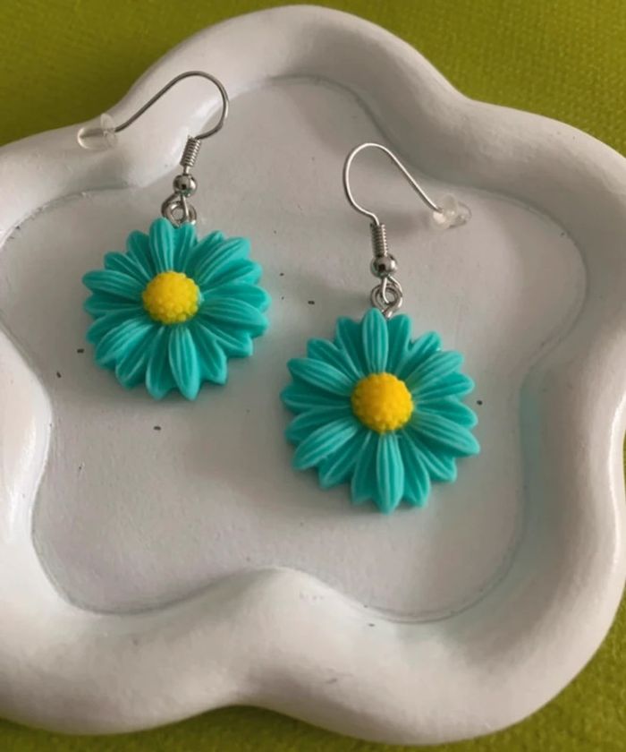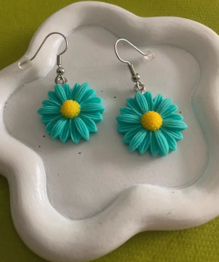 Boucles d’oreilles fleur marguerite bleue verte turquoise - photo numéro 6
