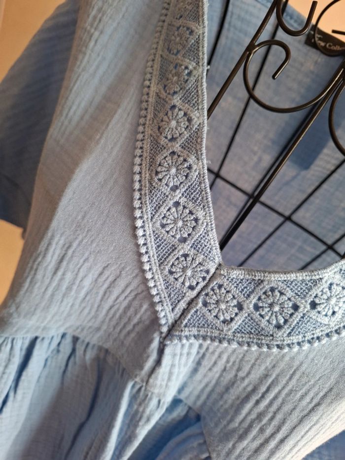 Robe neuve en gaze de coton "New collection" neuve avec étiquette 🏷 col V a motif brodee couleur crème taille unique convient du 36 au 44 🌸 dressing trie par # #laetitiap014_clotheswomennew