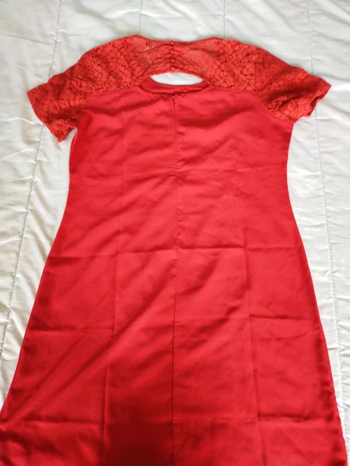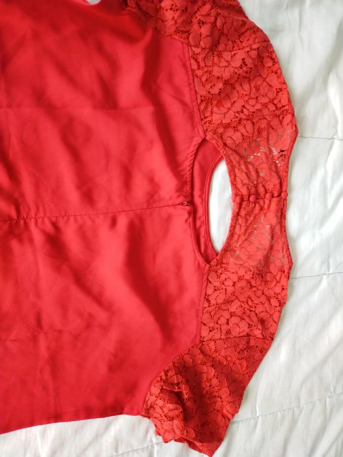 Détails dentelle sur le haut et les manches. Très joli décolleté au dos. Je revends car trop grande pour moi.