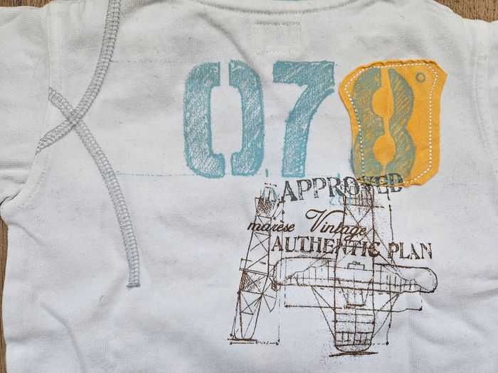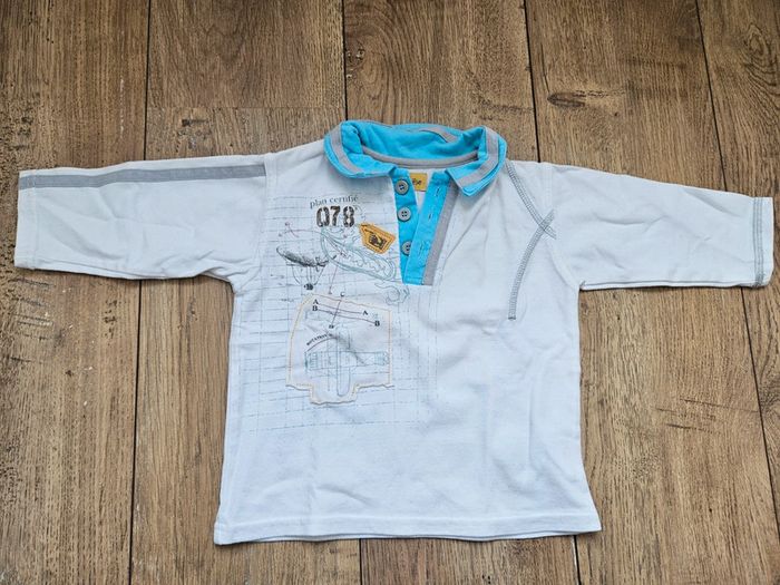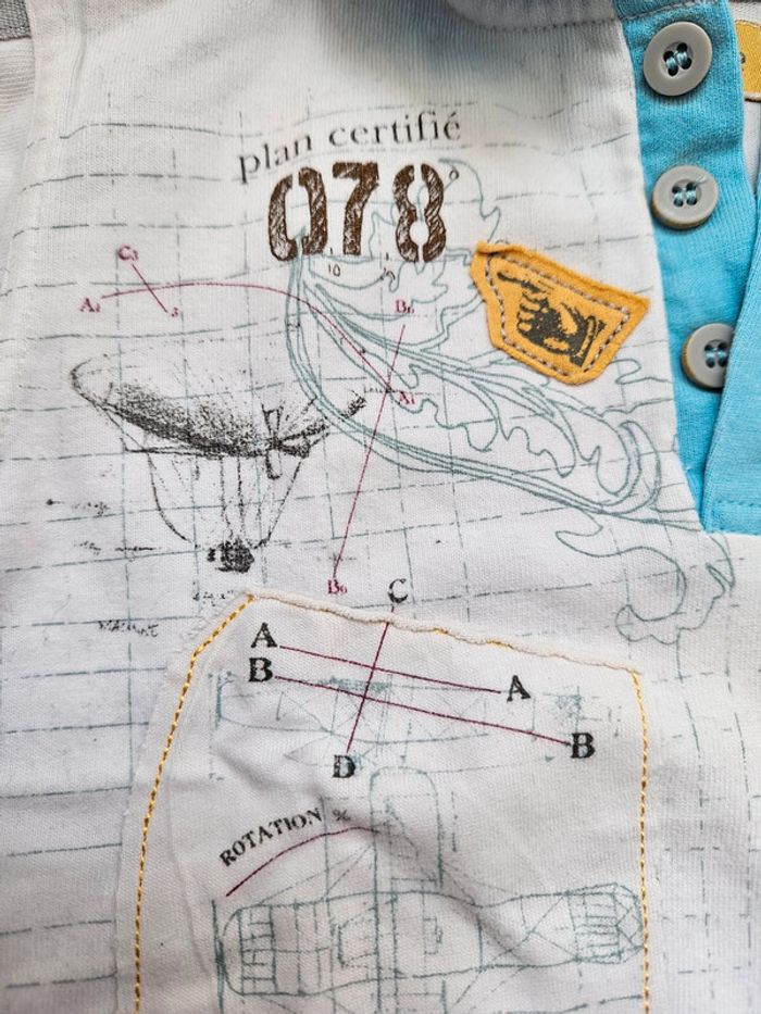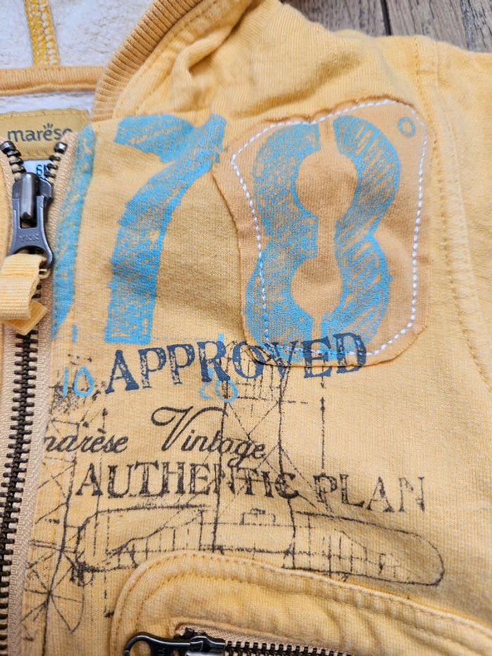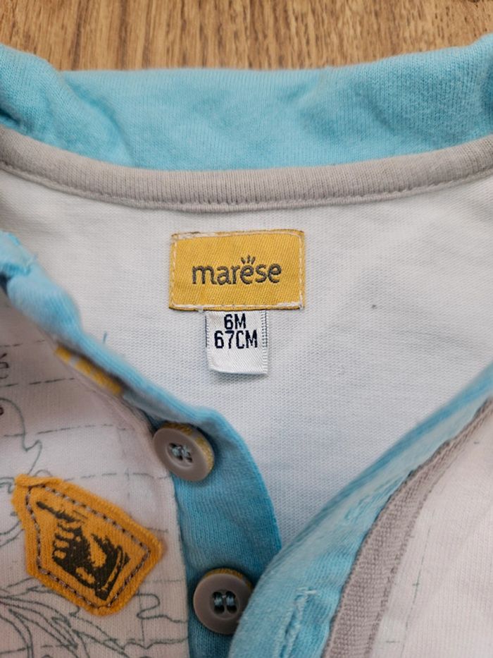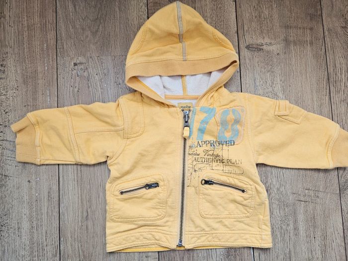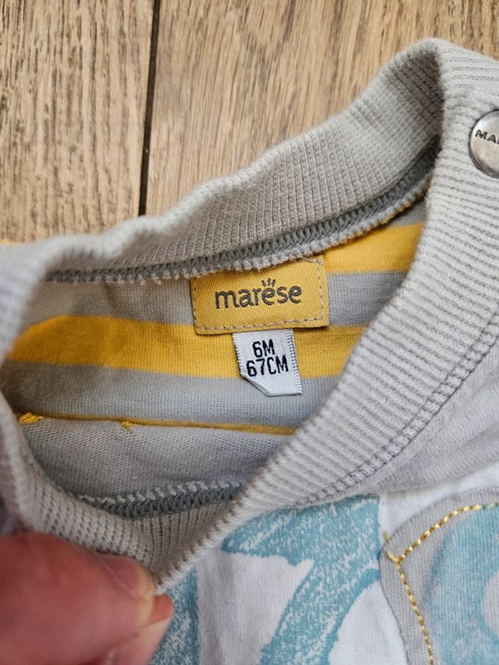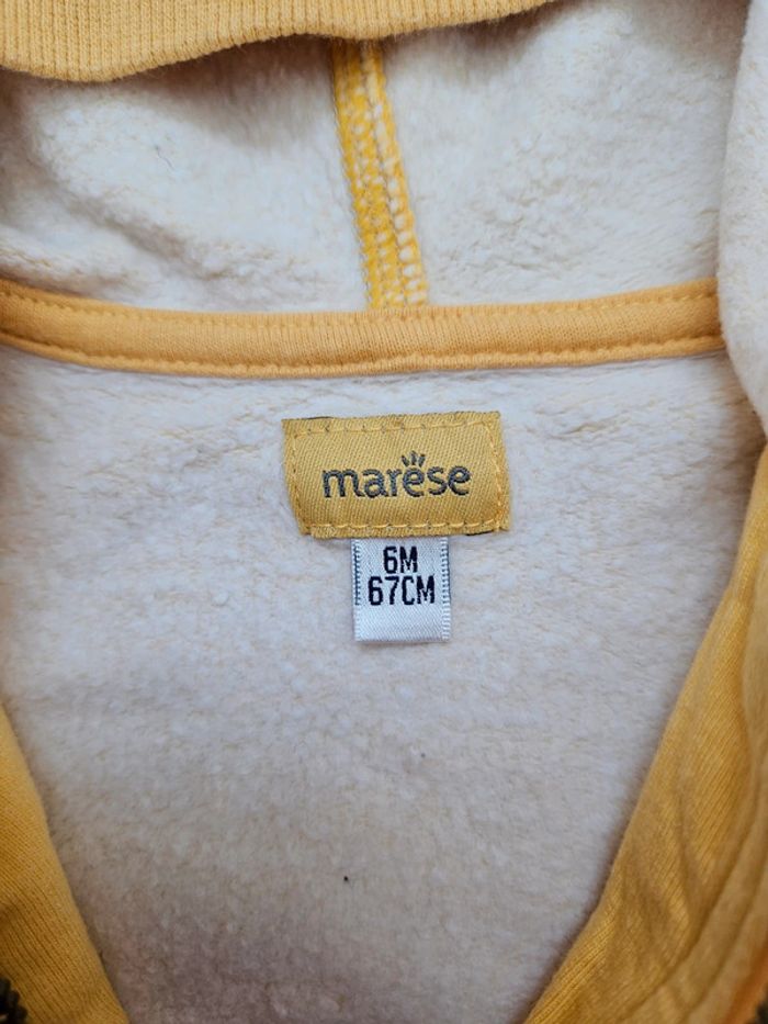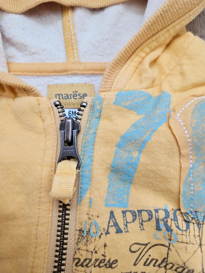 Très bel ensemble Marèse composé d'un gilet zippé manches longues jaune avec motifs, d'un polo manches longues blanc et bleu et d'un t.shirt marches courtes gris et jaune Très bon état #flagadajones6mois #marese6mois #ensemble6mois #gilet6mois C9N