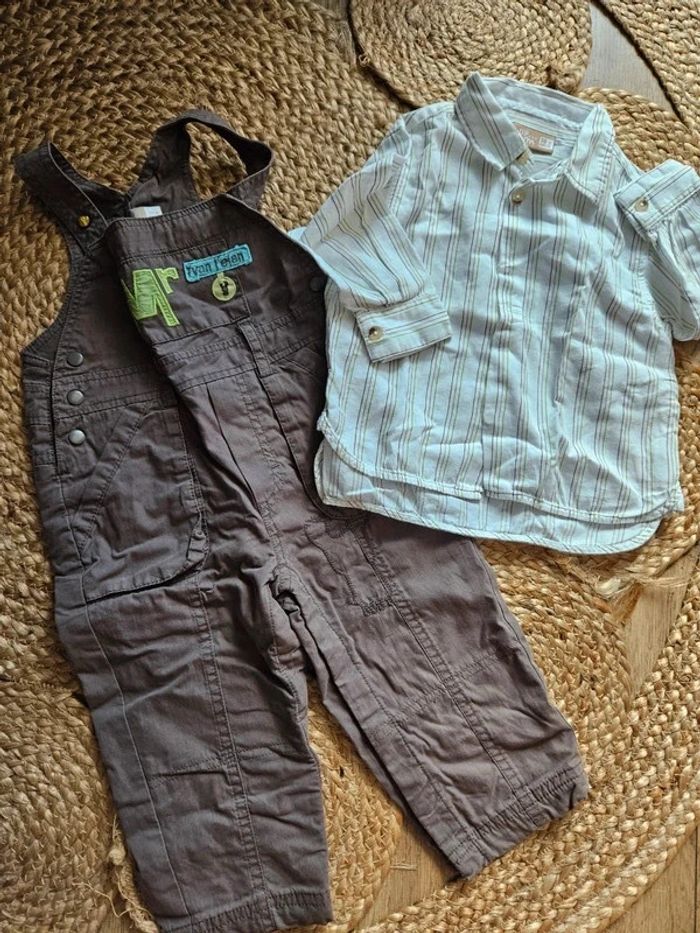 Ensemble chemise manches longues et salopette Du pareil au même DPAM 18 mois