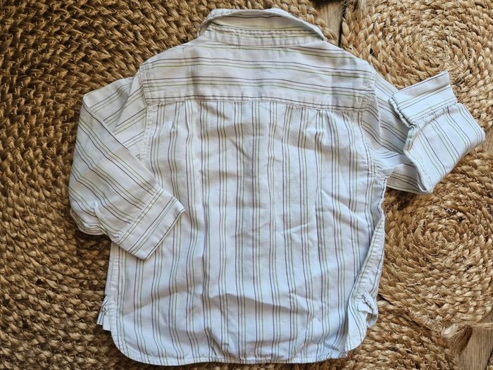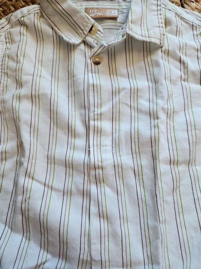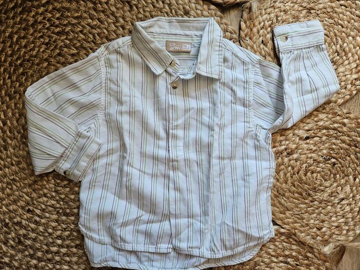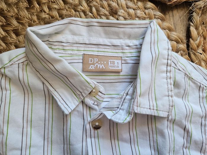 Ensemble 2 pièces DPAM Du pareil au même 18 mois Salopette marron, ouverture par pressions à l'entrejambe Chemise manches longues blanche avec de fines rayures marron et vert Très bon état #flagadajones18mois #ensemble18mois #dpam18mois #ensembledpam18mois #salopette18mois #chemise18mois Crose