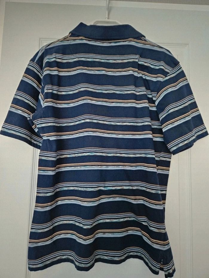 T.shirt manches courtes col polo rayé bleu marine taille M - photo numéro 8