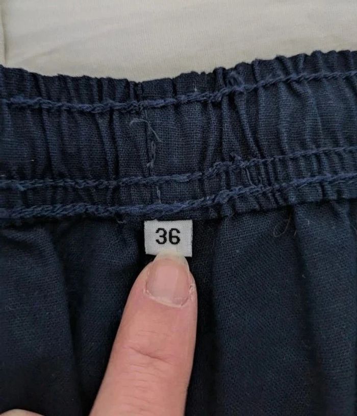 Pantacourt d'été en lin et coton marine - taille 36 - photo numéro 4