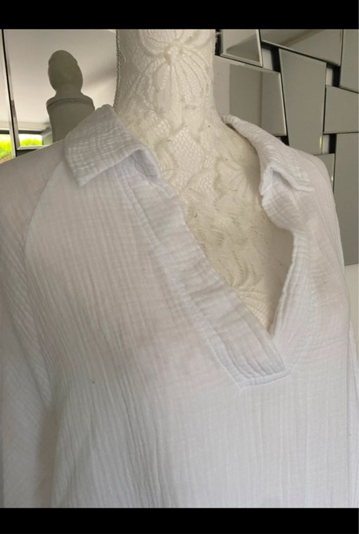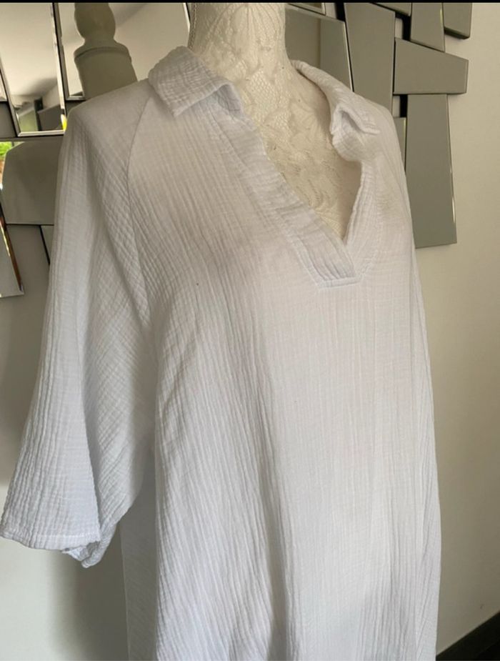 Robe longue neuve en gaze de coton, ultra légère et agréable à porter. Coupe ample et fluide, idéale pour l’été, les vacances ou un look bohème chic. 🌸Détails : • Couleur : blanc • Matière : gaze de coton • Taille : convient du L au XXL • Largeur aisselle à aisselle : 67 cm • Coupe oversize, effet fluide et décontracté 🌸État : Neuve, jamais portée