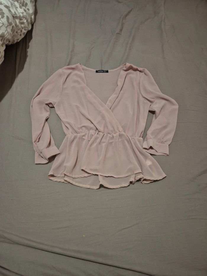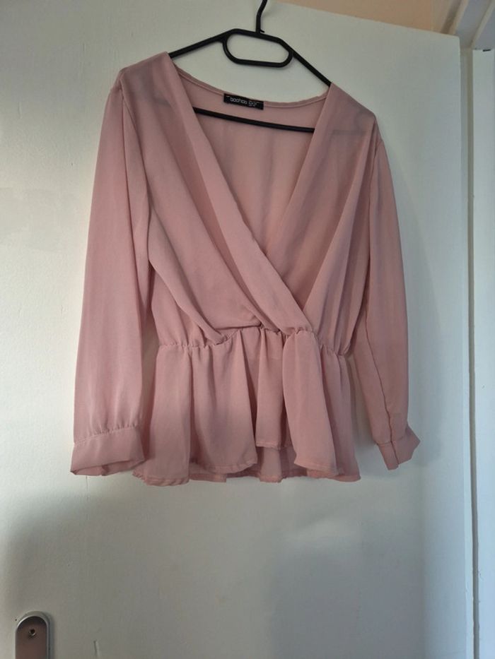 Blouse rose poudre effet transparent Taille 42 mais taille petit je dirais 38/40 Boohoo