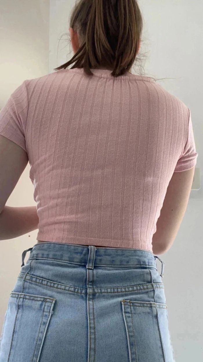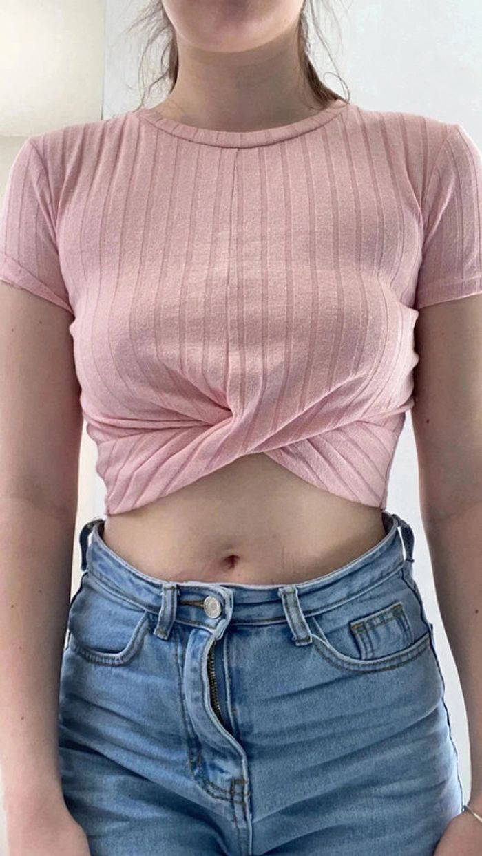 Top/t-shirt court croisé et cotele - photo numéro 4