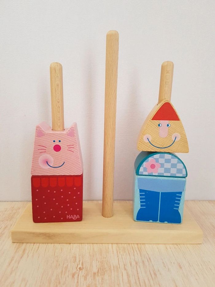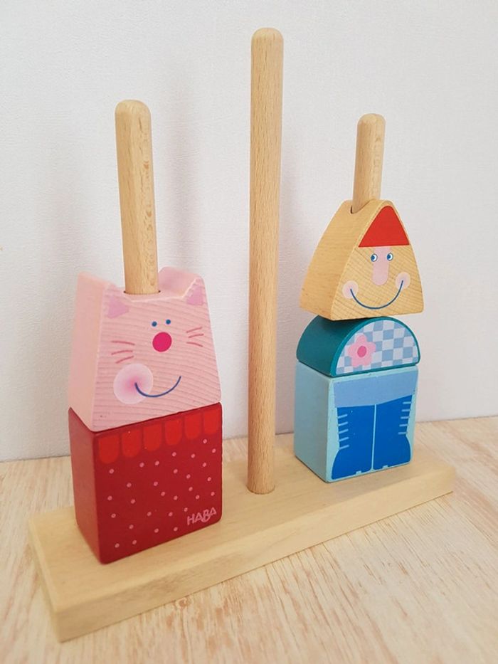 Le puzzle vertical en bois Haba est un jouet d'éveil à enficher avec des grosses pièces à enfiler sur le support. Différents blocs à emboîter comme des perles dans un sens ou dans l'autre. Une construction dans l'espace en 3 dimensions qui encourage les premières manipulations pour assembler de multiples combinaisons. Un jeu de manipulation montessori amusant qui fonctionne comme un puzzle vertical à emboitement pour stimuler la motricité fine, développer la notion de tri et l'orientation spatiale, apprendre à différencier les formes et les couleurs. COMPLET : 1 base avec 3 tiges et 10 pièces (dont visage et tête de chat) Longueur du support : 19 cm Longueur des pièces : 5 cm