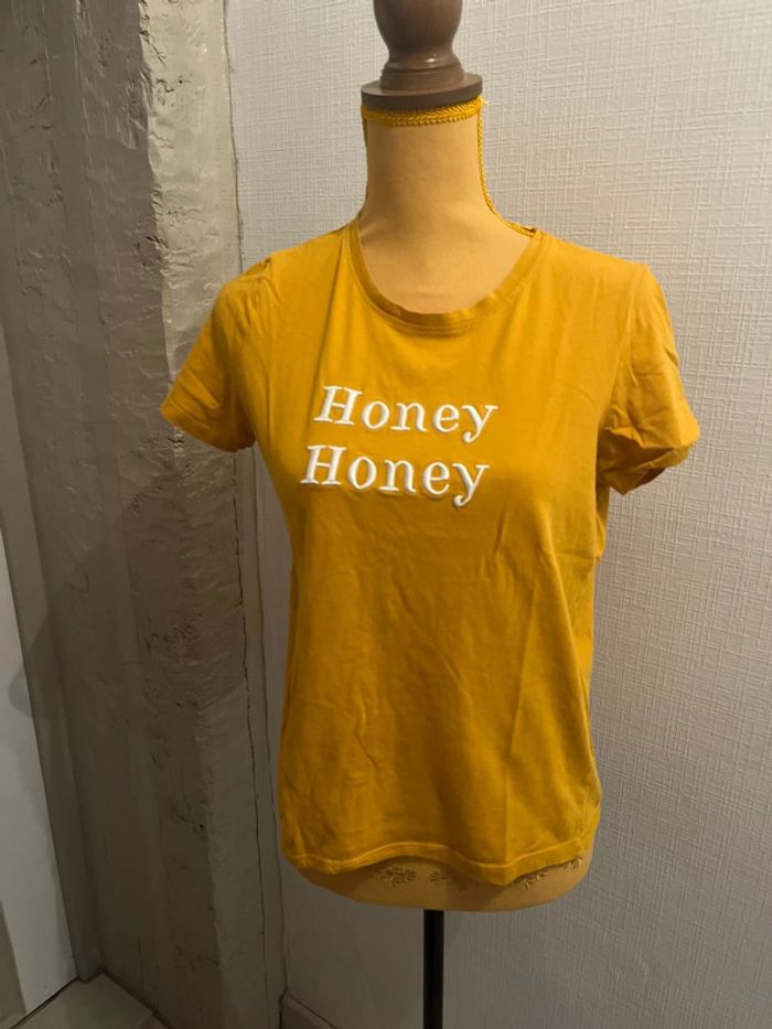 Joli tee shirt en tbe n’a plus d’étiquette de taille mais correspond à un 38 mesure aisselles à aisselles 44 cm