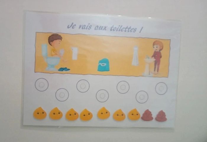 Fiche Propreté - Apprendre à aller aux toilettes en s’amusant ! Cette fiche ludique aide les enfants à devenir propres en toute autonomie. Après chaque passage aux toilettes, ils collent une vignette "pipi" ou "caca" pour marquer leur réussite. Un outil simple, motivant et visuel pour accompagner l’apprentissage de la propreté de façon positive et encourageante ! Fait main avec soin Envoi rapide et soigné.