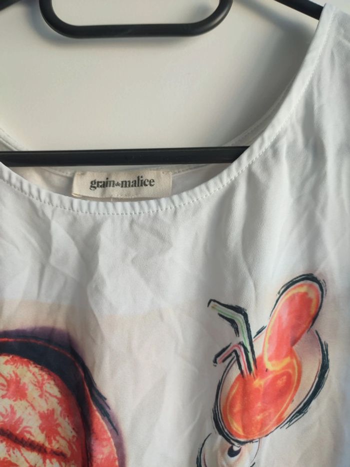 Vends blouse motif plage. Taille 38. Marque grain de malice.