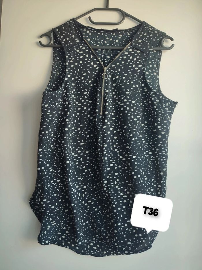Vends blouse bleu marine à pois. Taille 36. Marque Kiabi