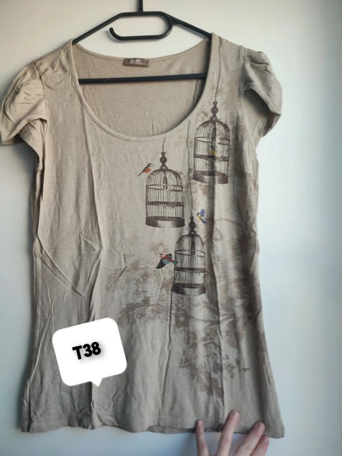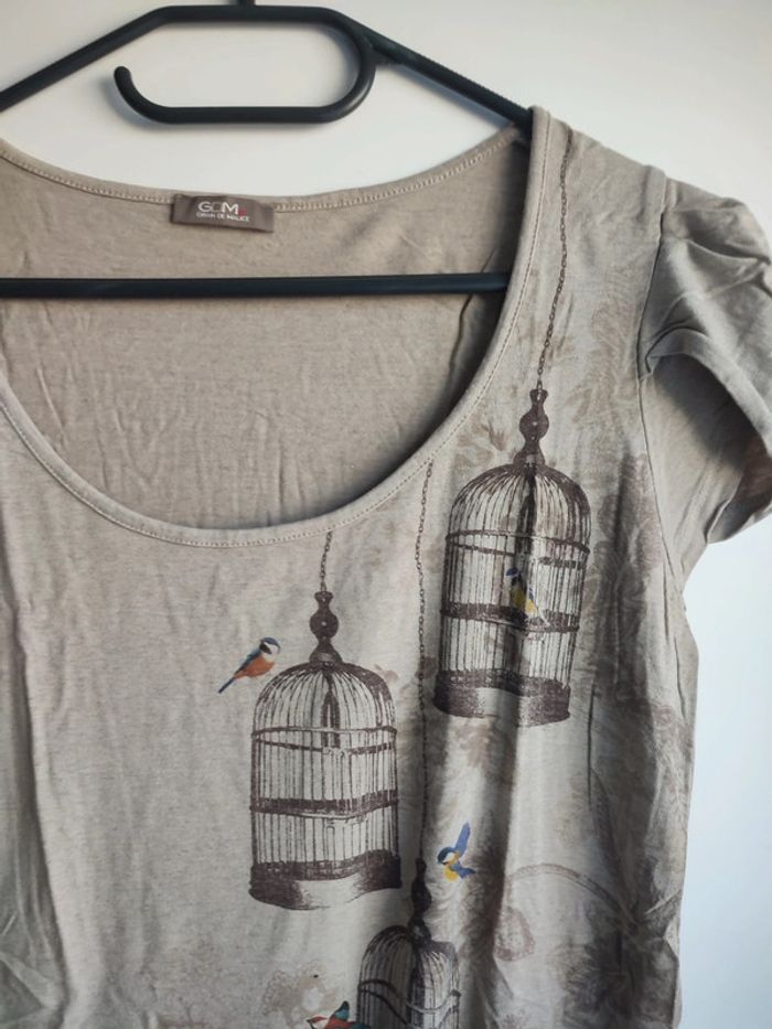Vends t-shirt cage aux oiseaux. Marque grain de malice. Taille 38. Détails épaulettes bouffantes.