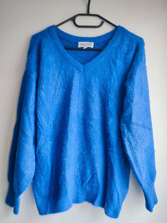 Vends pull tout doux bleu électrique. Sans marque. Taille unique.