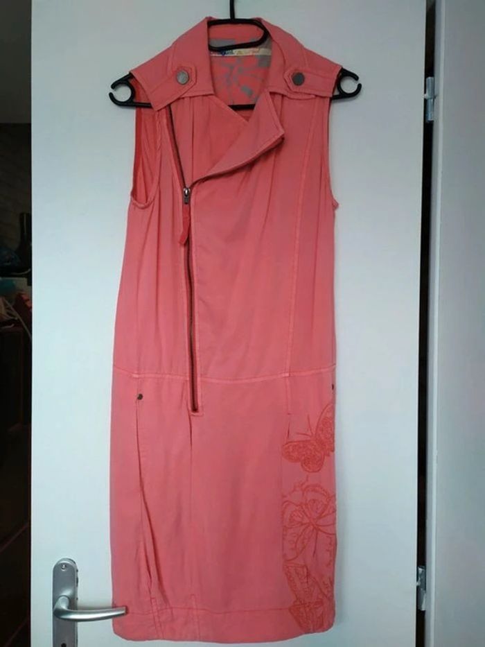 Vends robe a zip. Marque desigual. Couleur rose saumon. Très bon état.