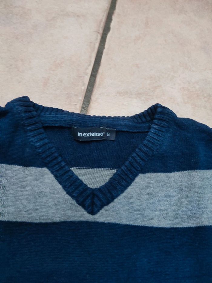 Vends pull de la marque in extenso, de couleurs bleu, gris et marine rayé. Taille 6 ans. Ok pour un 5 ans selon la taille de l'enfant 110/116cm