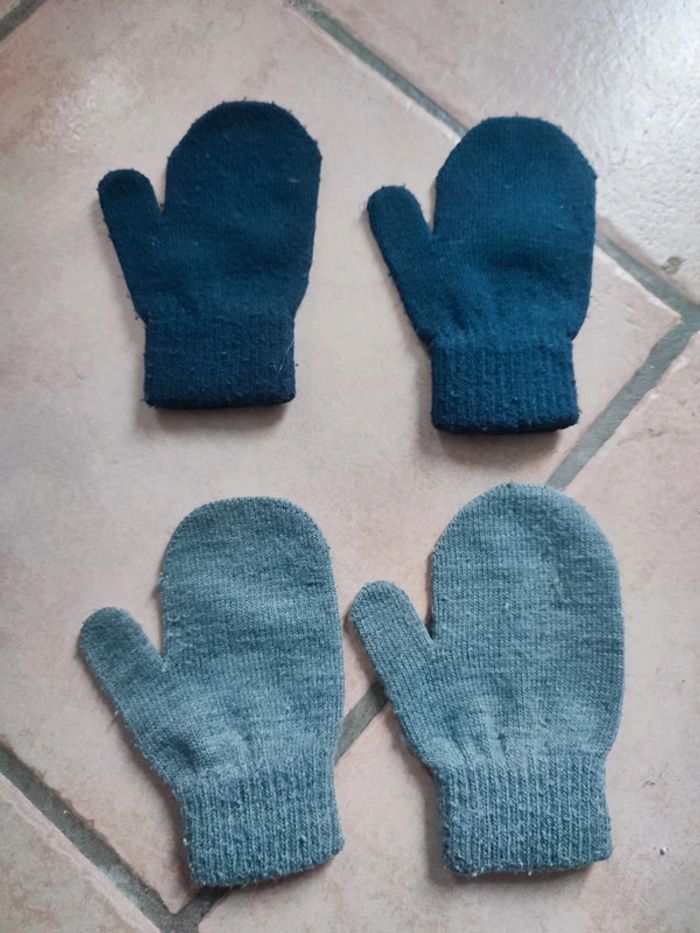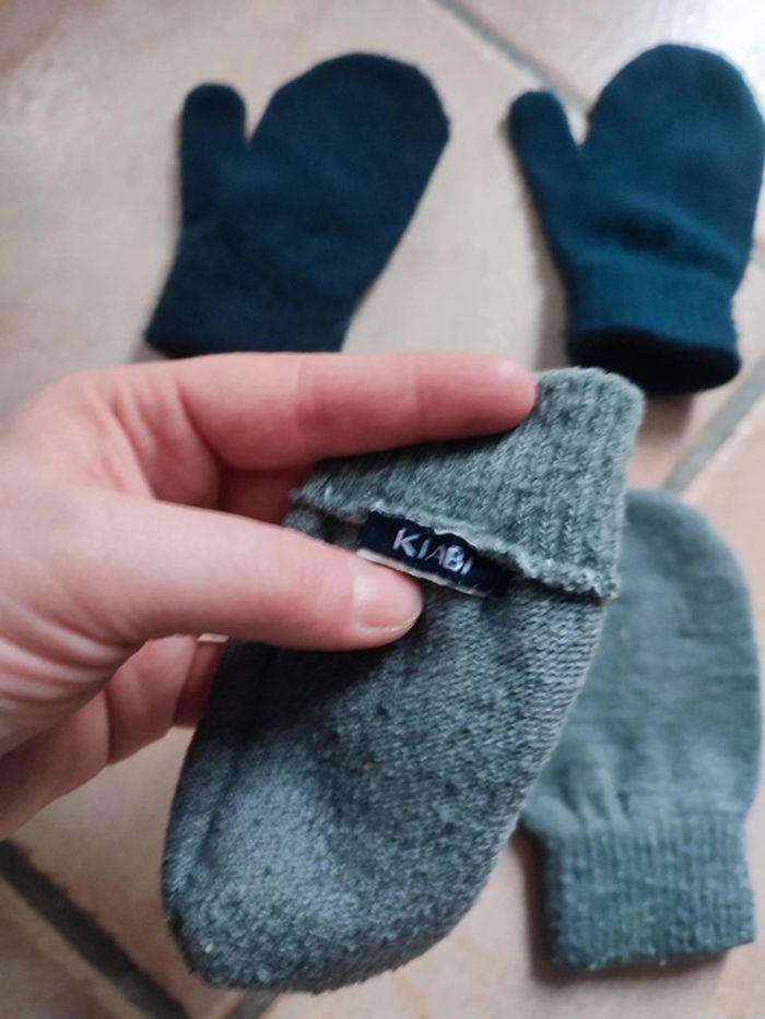 Vends lot de deux paires de moufles. Un grise une bleu. Marque Kiabi. Taille 2/4ans.