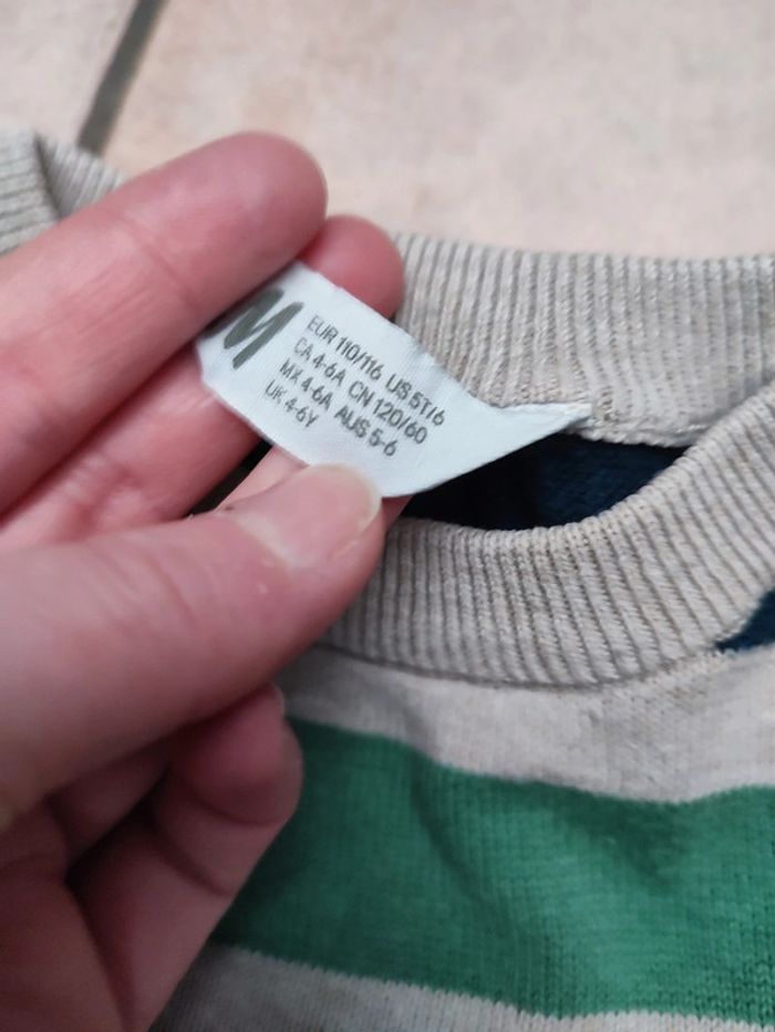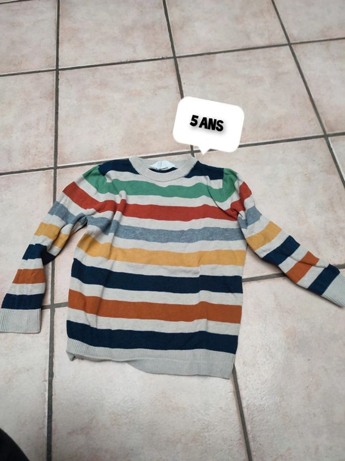Vends pull de marque H&M, taille 110/116cm. Rayés de différentes couleurs. En très bon état.
