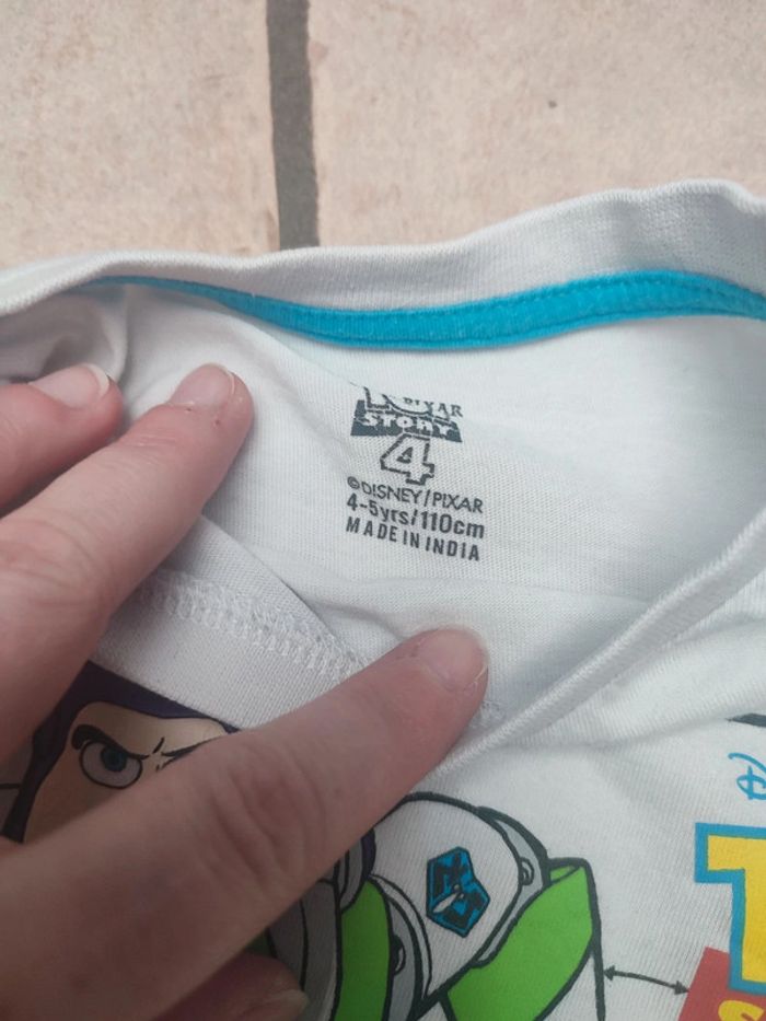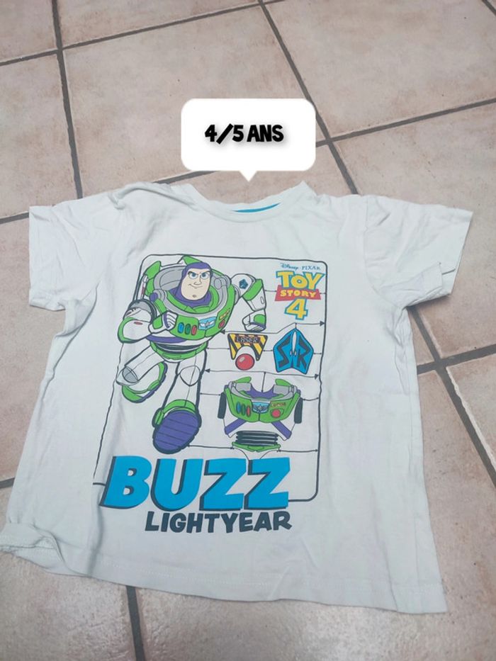 Vends t-shirt blanc, motif Buzz l'éclair. Marque Toy story. Taille 4/5 ans. #4anslesfringuesdejulie #5anslesfringuesdejulie