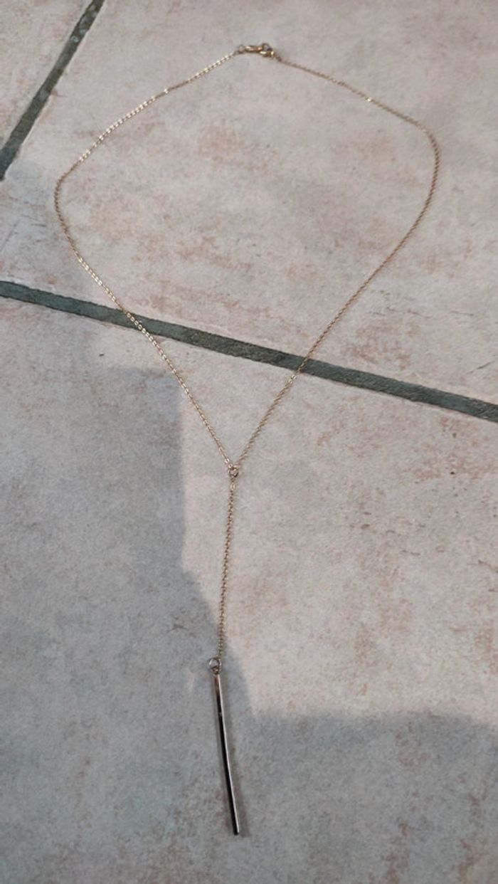 Vends collier long avec tige droite. Joli sur un décolleté. Plaqué doré