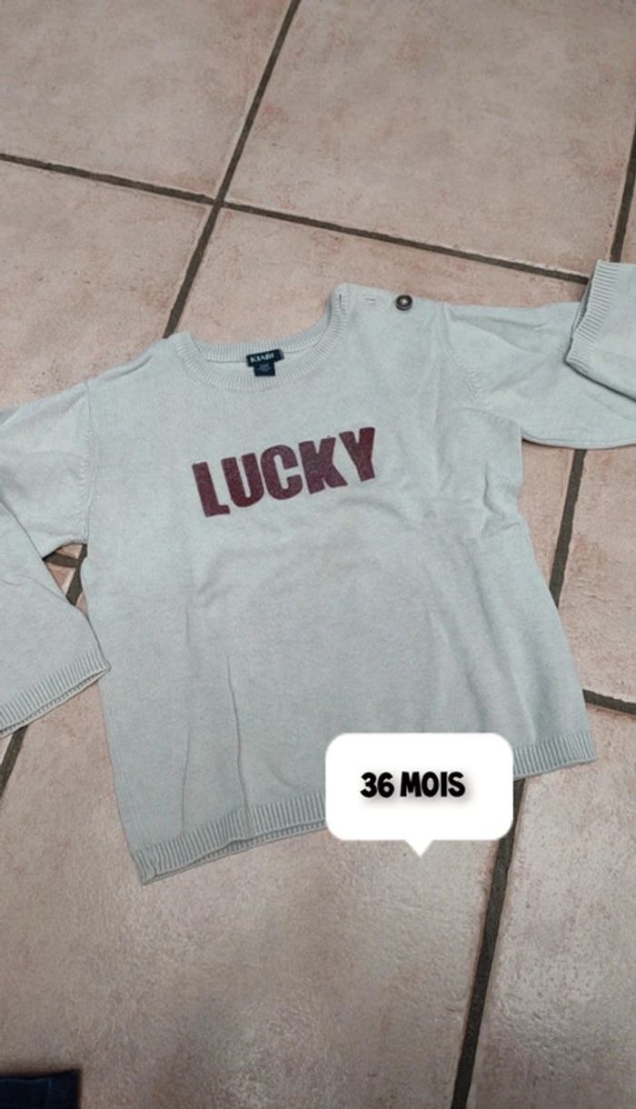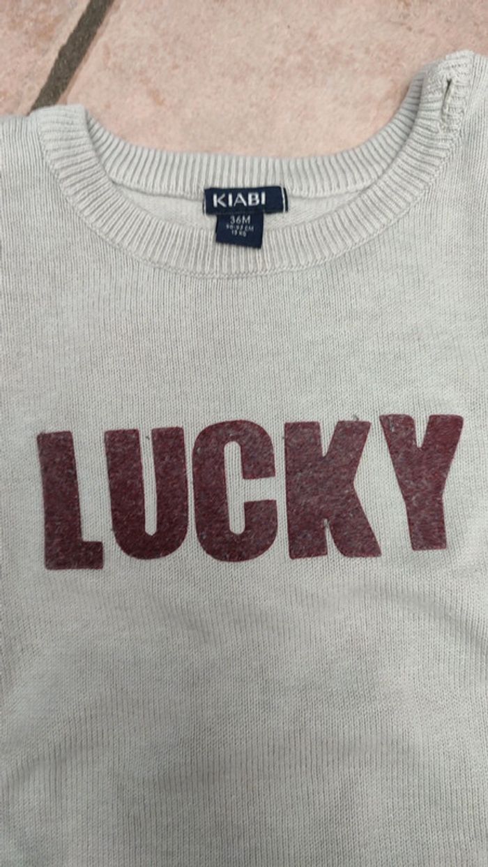 Vends pull motif Lucky. Marque kiabi. Taille 36 mois #36mois3anslesfringuesdejulie