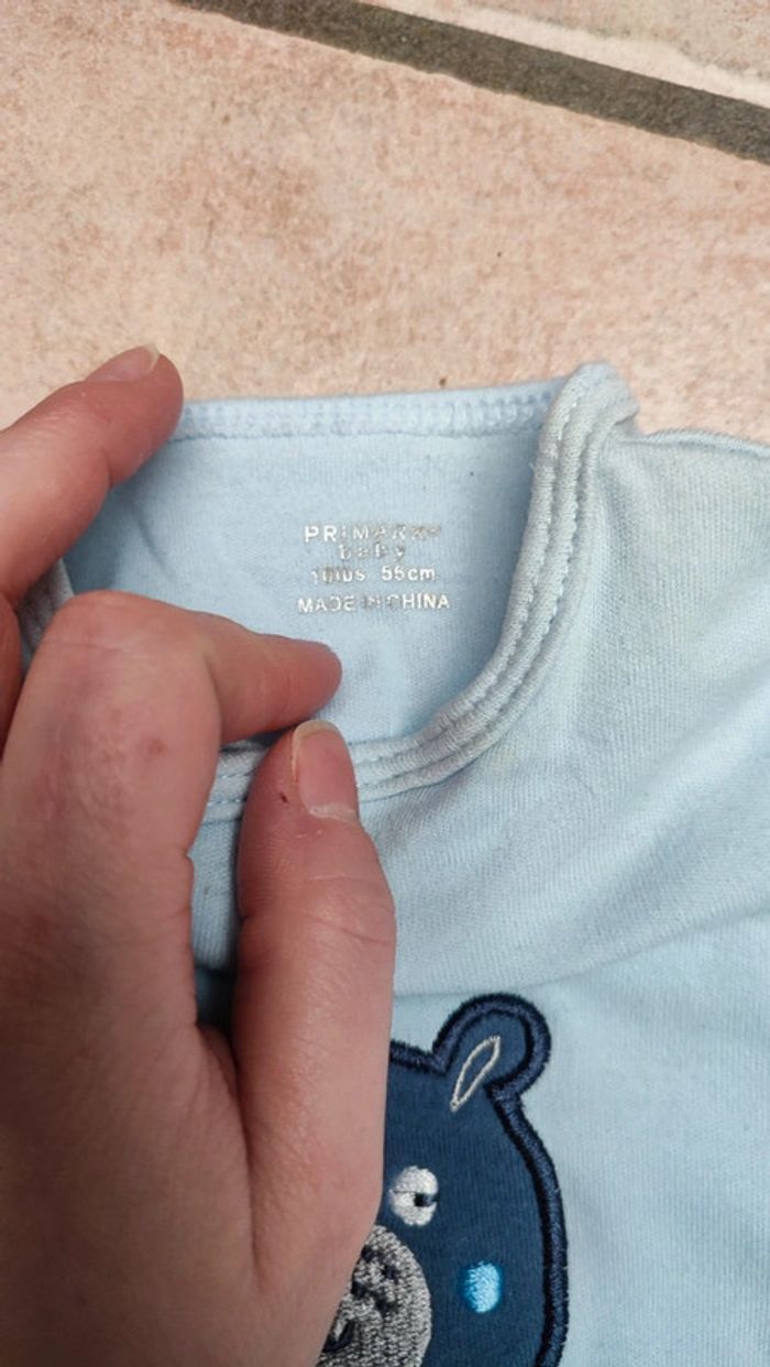 Vends pyjama de marque Primark. Motif Ours. Bon état. Taille 1 mois. Système de revers de manche petites moufles et ouverture sur l'avant. Pour visualiser tout le 1 mois cliquez #1moislesfringuesdejulie