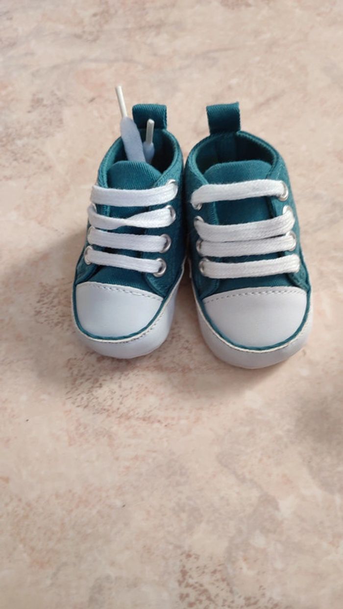 Vends chaussures bébé, bleu turquoise. Taille naissance/ 3 mois. Marque kiabi. Très peu porté. Très bon état. Comme neuve. Pour visualiser tout le #1moislesfringuesdejulie #3moislesfringuesdejulie