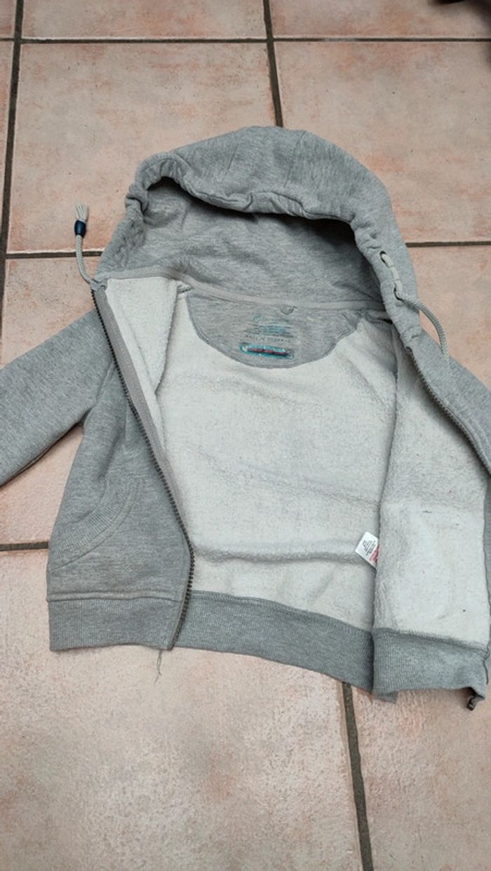 Vends gilet ou sweat à capuche gris. Marque Primark. Taille 3/4ans. Étiquette avec nom encore présente. #36mois3anslesfringuesdejulie