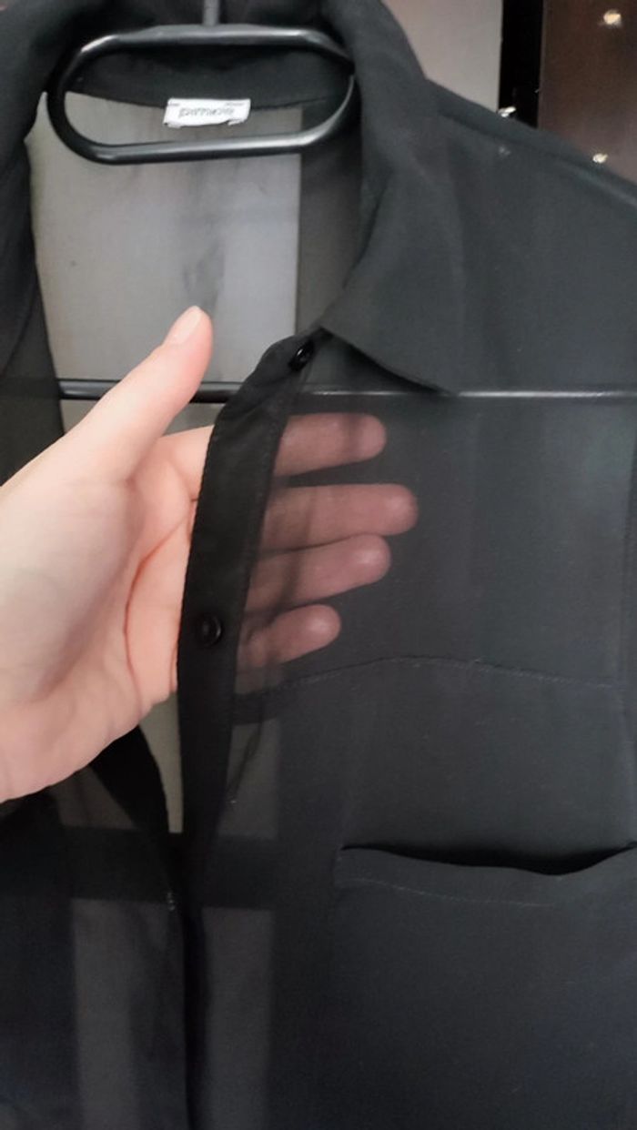 Vends chemisier manches courtes noir transparente. Taille 38.