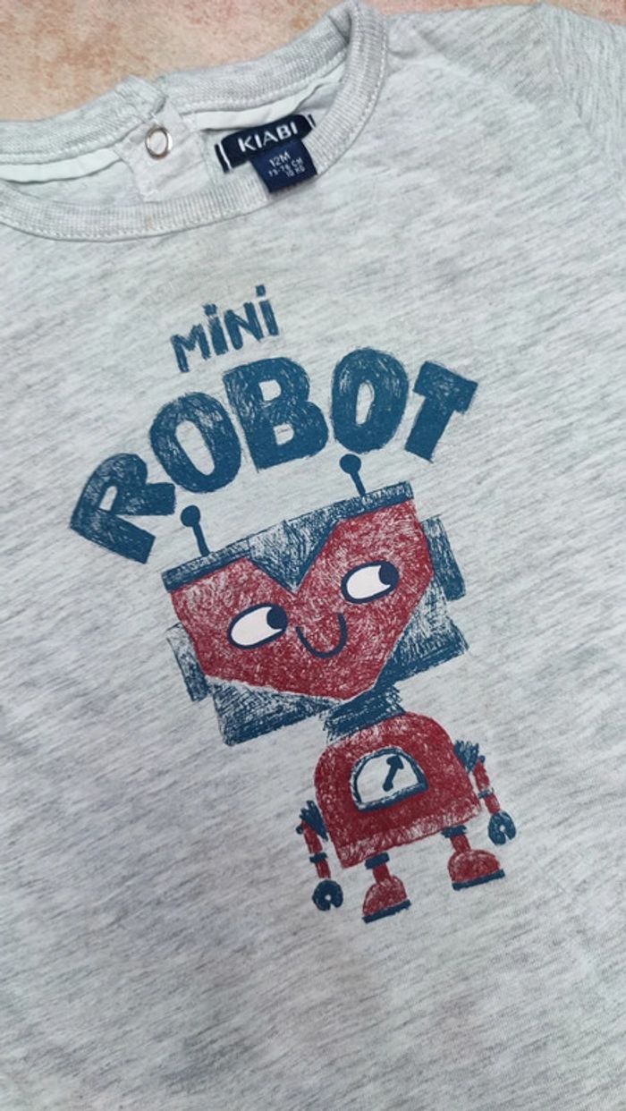 Vends t-shirt manches longues marque Kiabi. Motif robot. Très bon état Pour visualiser tout le 12 mois cliquez sur #12moislesfringuesdejulie
