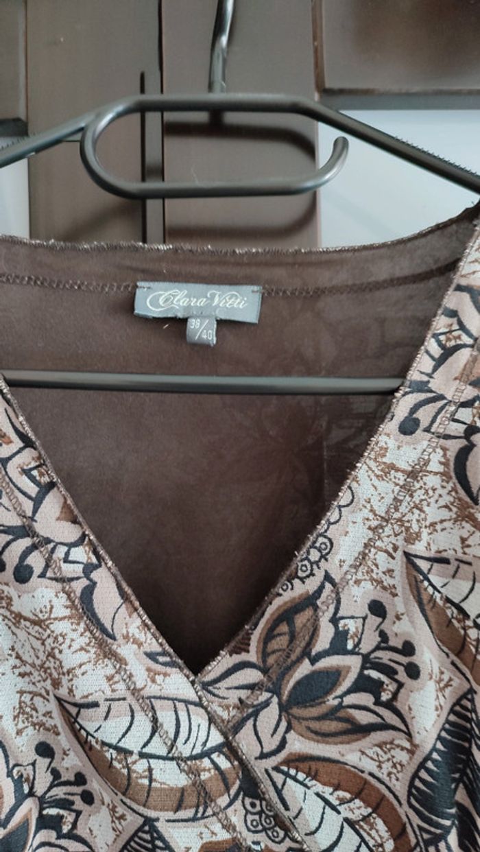Vends haut croisé, motif floral, dans les tons marrons. Taille 38.
