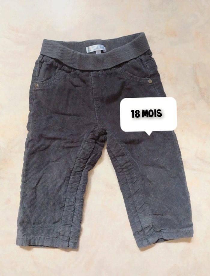 Vends lot de 2 pantalons type velours. Couleur gris. Marque Kitchoun. Entre jambe qui se déboutonne. Taille 18 mois. Pour visualiser tout le 18 mois cliquez sur #18moislesfringuesdejulie