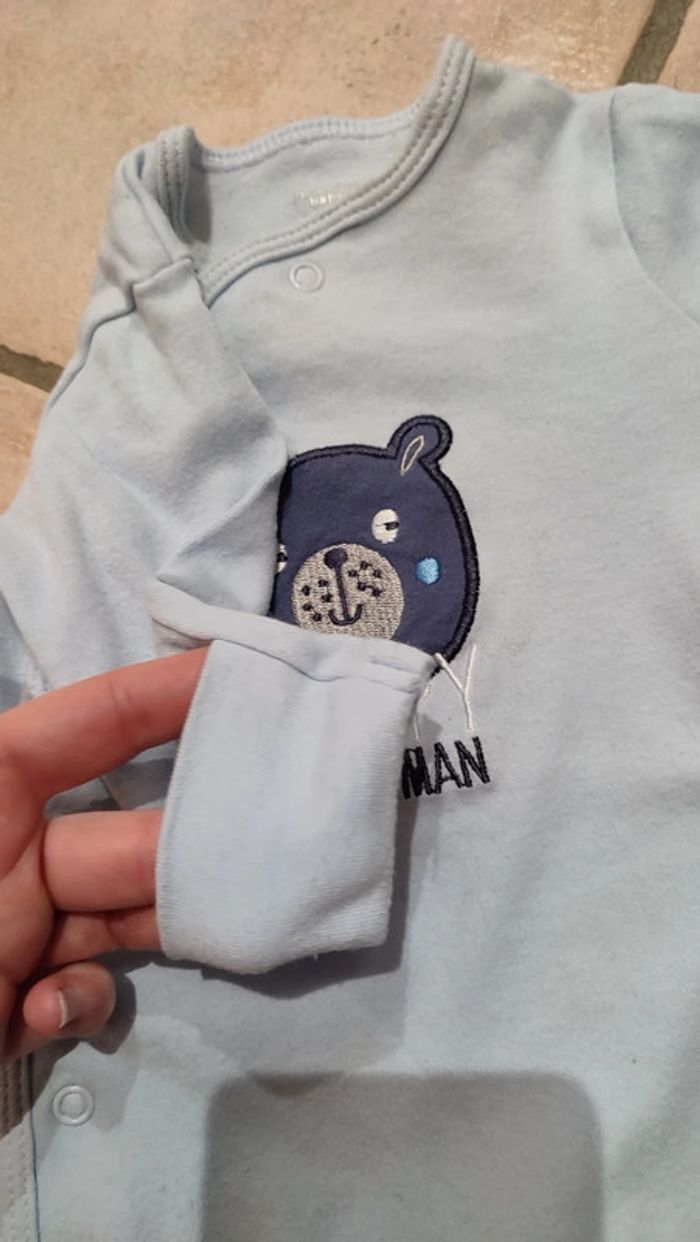 Vends pyjama primark motif ours. Taille 1 mois. Système de manches petites moufles. Cf photo talons et manches qui bouloches. Pour visualiser tout le 1mois cliquez #1moislesfringuesdejulie