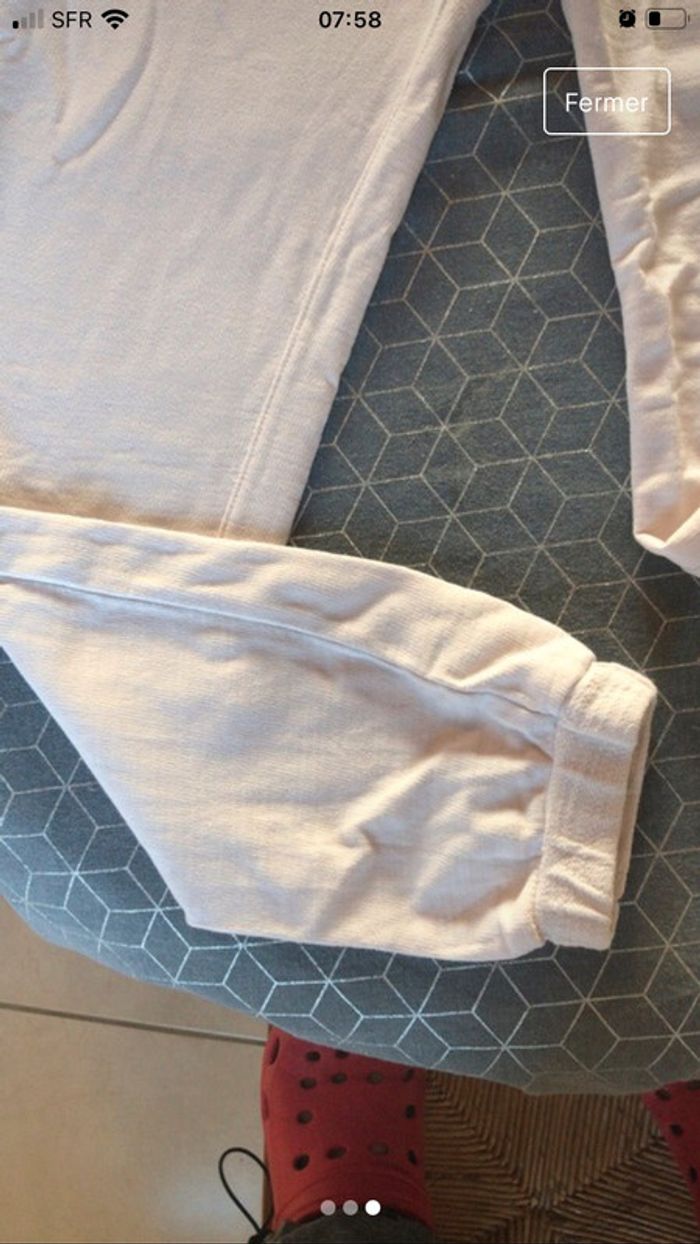 le bas est tout neuf car trop grand pour ma fille la veste trace d usure