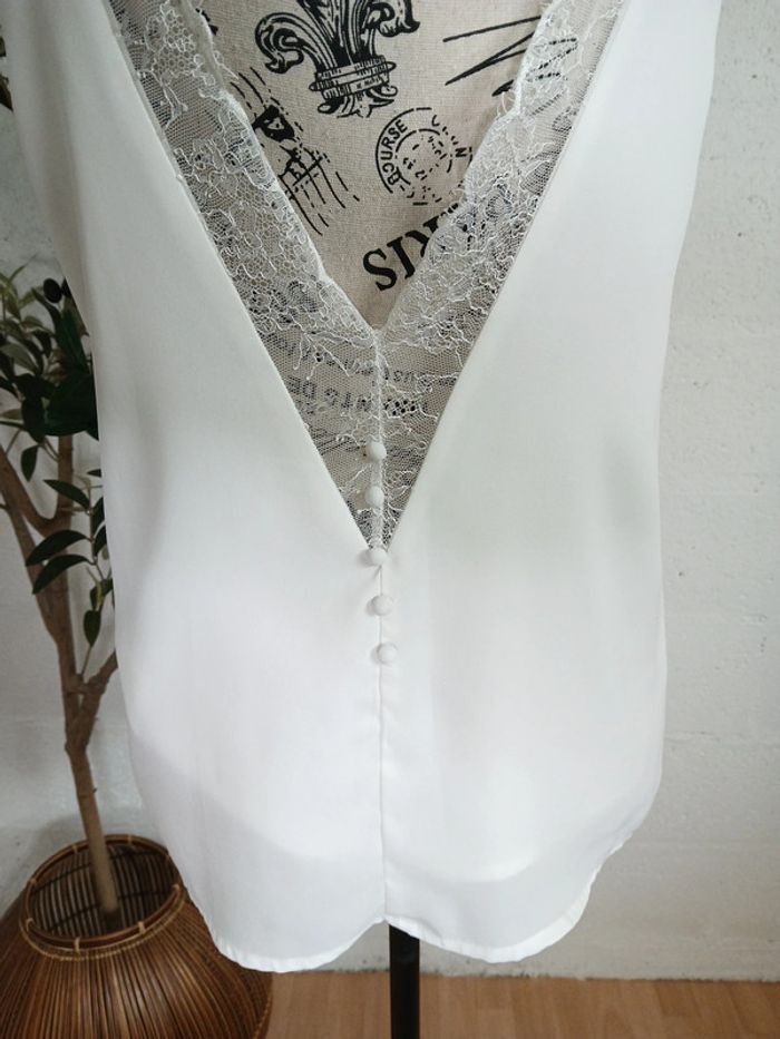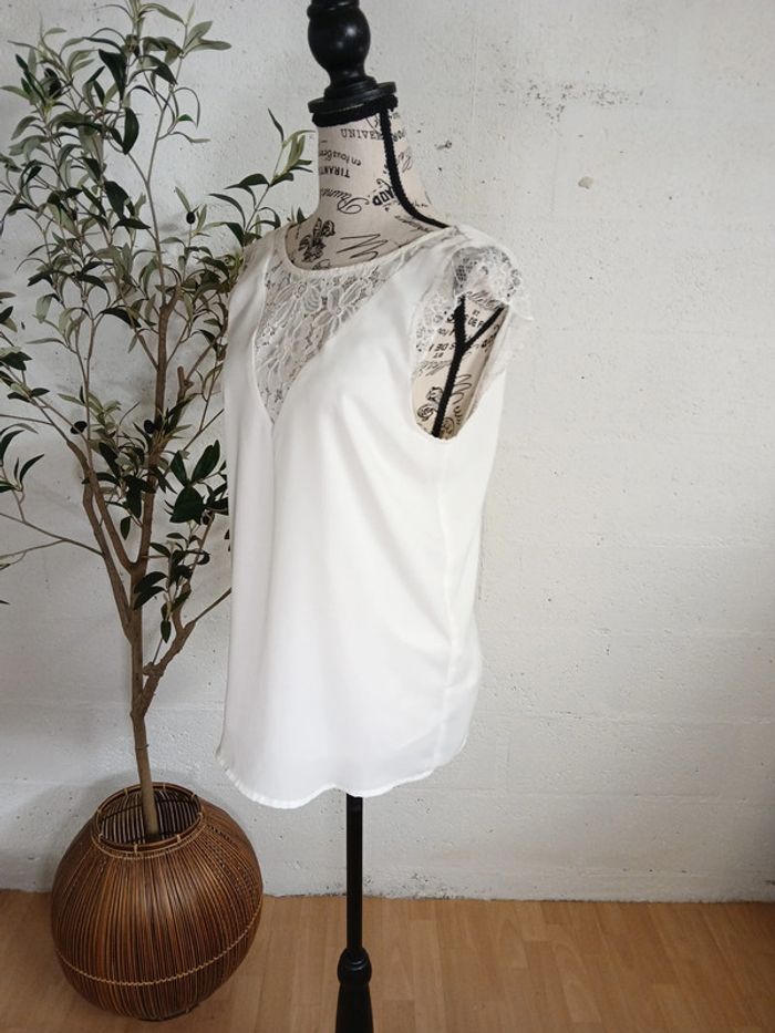 Très jolie blouse fluide en blanc cassé, parfaite pour la mi-saison ou l'été 🌿 • Marque : Peace n love • Taille : S / M ( taille grand) • État : Très bon état • Matière : 100% polyester, fluide et légère • Détails : Dentelle délicate sur l’encolure, les épaules et dans le dos Dos dénudé en V élégant avec boutons décoratifs Entièrement doublée : pas de transparence 📏 Dimensions à plat : Largeur aisselles : 50 cm Longueur dos depuis l’épaule : 63 cm ✨ Blouse très féminine, facile à assortir avec un pantalon fluide, un short, un jean clair ou une jupe. 🛍 D’autres articles d’été sont disponibles dans mon dressing : robes, pantalons légers, maillots de bain, tops et accessoires 🧺 🌈 Réductions dès 2 articles achetés – pensez au lot pour faire des économies sur les frais de port 😍 #blousefemme #blanccassé #dentelle #topété #lookchic #colV #tailleM #pucelledor #blouseélégante #vinted #vêtementsfemme #lotvinted #réductions