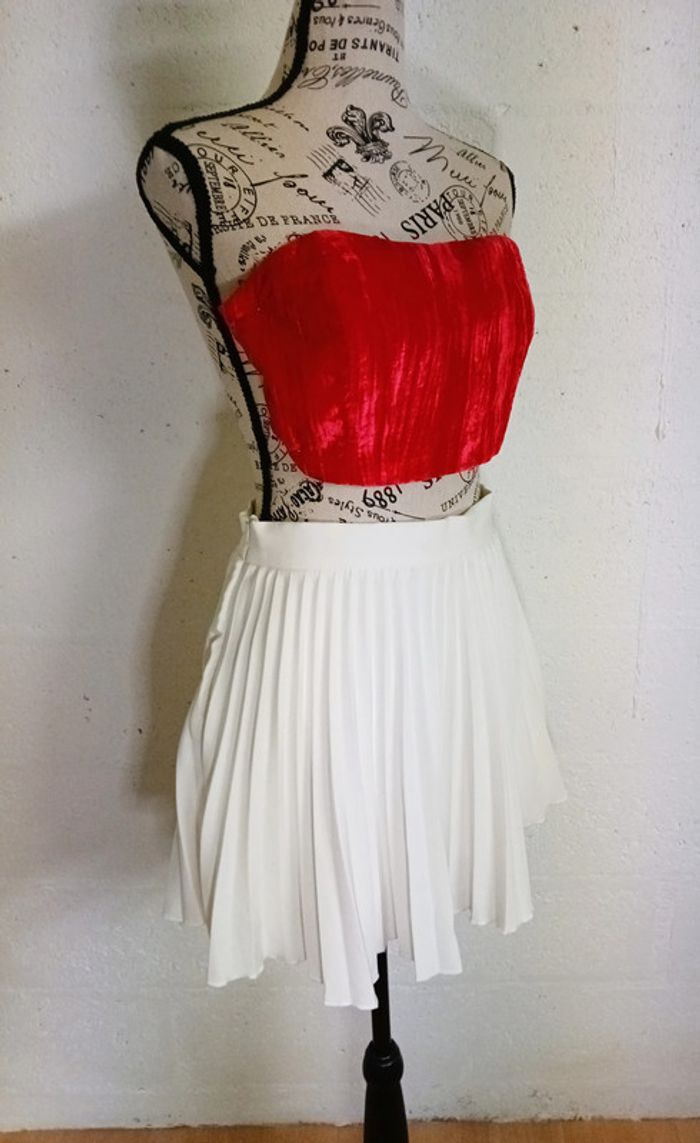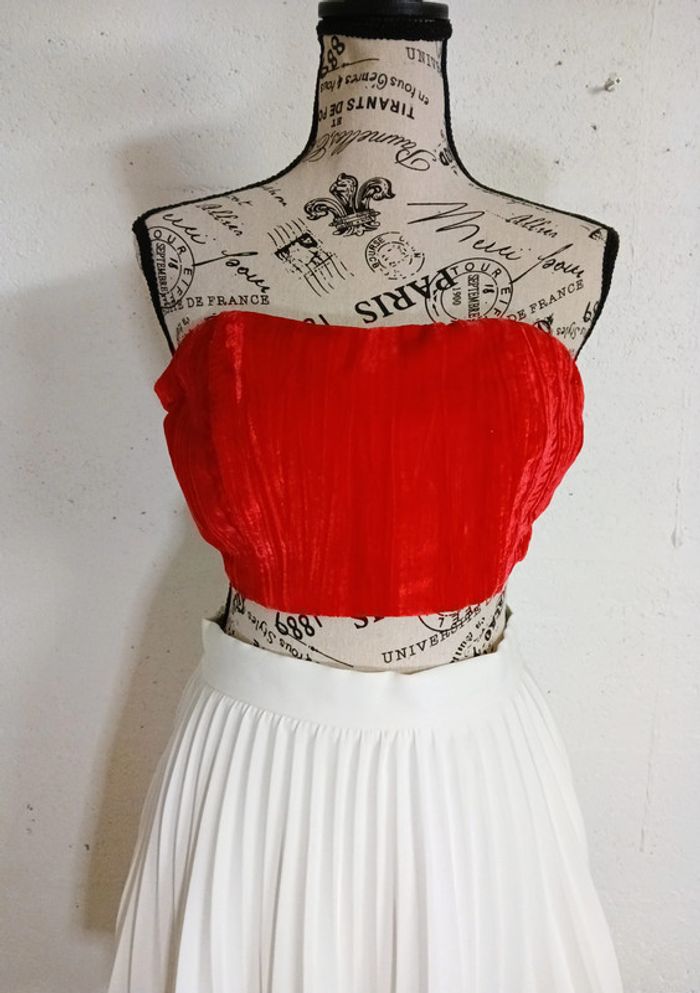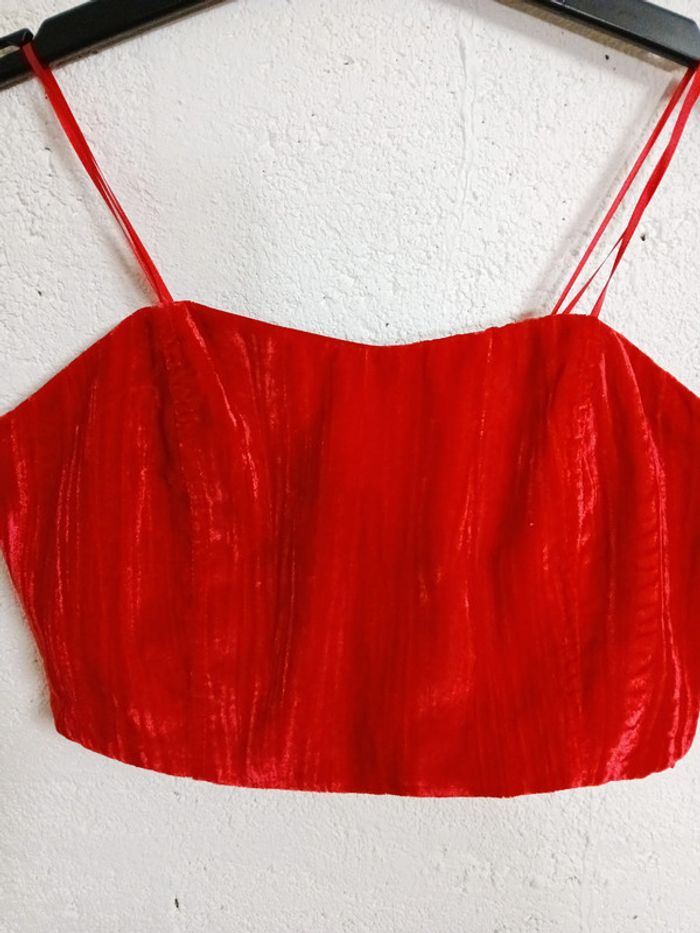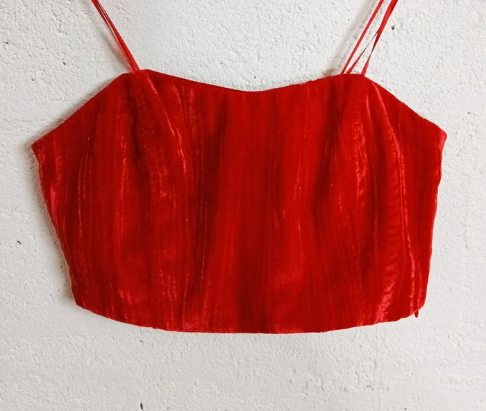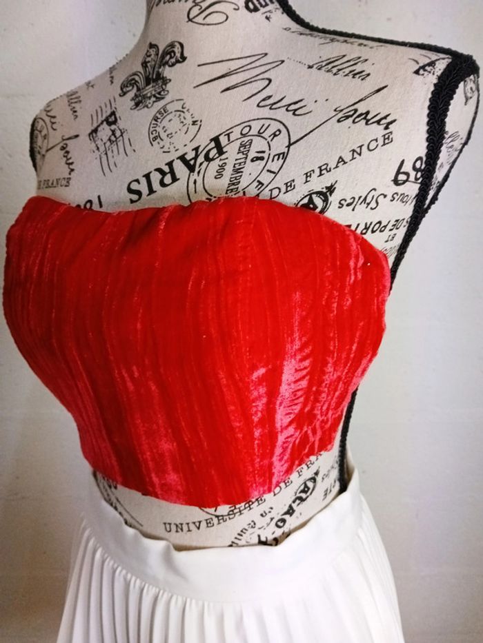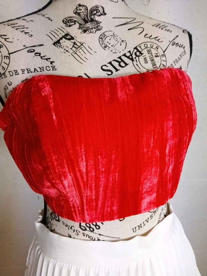 ✨ Crop top bandeau style velours, couleur rouge vif, parfait pour cet été !