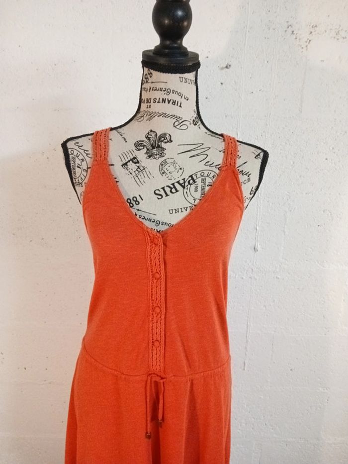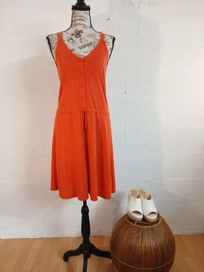 Légère, fluide et pleine de peps, cette robe CAMAÏEU est parfaite pour les journées ensoleillées ou les vacances 🌞 Sa coupe flatteuse et son cordon à la taille permettent de l’ajuster selon ton envie (plus cintrée ou loose). 🧡 Détails : – Coloris corail/orange éclatant – Cordon réglable à la taille – Bretelles fines (non réglables) – Tissu léger, agréable à porter – Étiquette de taille manquante, convient à un grand S / M 📏 Mesures à plat : – Aisselles : 39 cm – Taille : 42 cm – Longueur dos (hors bretelles) : 83 cm 📦 État : Bon état – aucun défaut majeur, tissu en bon état 💃 Idéale pour l'été, les festivals ou une virée plage 🧵 Matière : étiquette coupée, probablement mélange coton/polyester léger 🌈 Astuce : Combine-la avec les espadrilles compensées pointure 38 également disponibles dans mon dressing pour un look estival complet 💕 💸 Réductions dès 2 articles ! Frais de port groupés = plus d’économies 😍 🔖 Hashtags #robeété #camaieu #corail #tailleSM #lookestival #dressingfemme #videgreniervinted