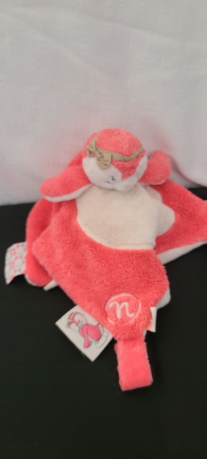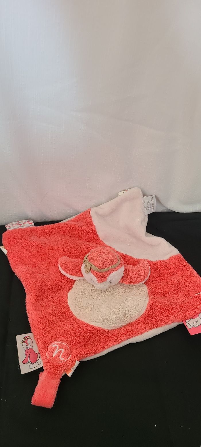 Doudou plat carré oiseau pingouin rose beige Daisy et Coco NOUKIE'S