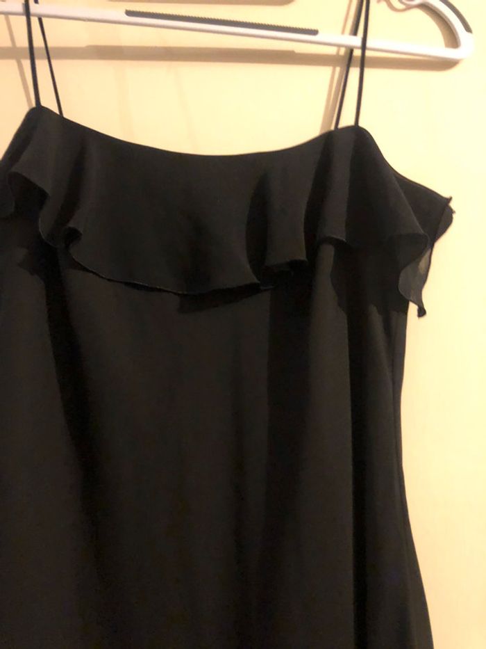 petite robe noir petit volant en haut et en bas très légère doublure noir.